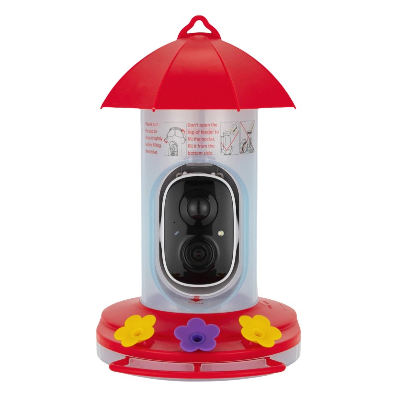 Intelligent Function: This product is paired with AI that automatically recognizes more than 10,000 species of birds, helping you to understand the types of birds and more information about their habits. Its built-in PIR sensor automatically notifies your phone when a bird passes by. It also has the function of frightening away squirrels with the manual alarm sound, guarding the birds' food.