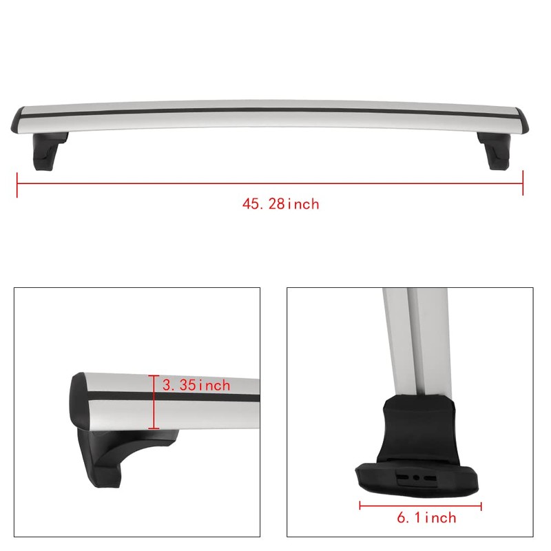 - Excellent Materials] ---- High strength aluminum roof rack with a bearing capacity of 165LBS, will not be bulky and be long-lasting in various weather. Meanwhile. The connection between the crossbars roof rack and the vehicle is made of ABS plastic plastic, which can be tightly connected to the vehicle without scratching