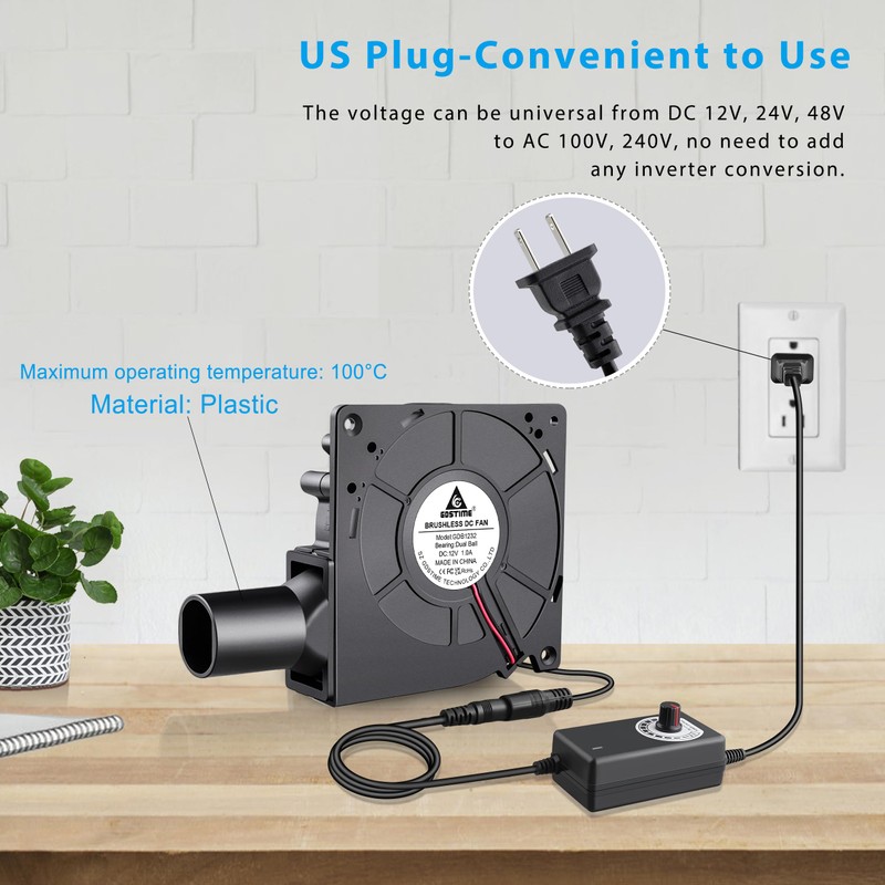 GDSTIME BBQ Stove Fan, 120mm x 32mm 12cm AC 100-240V Blower Inflatable Cooling Fan for Boiler Outdoor Camping Drum Smoker Cooking BBQ Stove DIY, Variable Speed Controller, US Plug