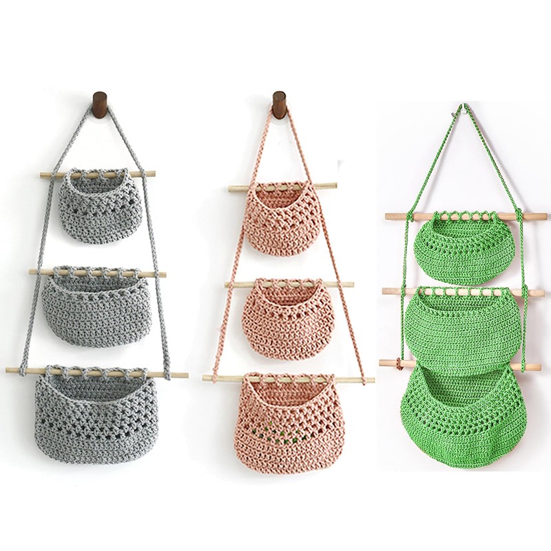 - Easy installation: simply mount 3 wooden slats and hanging rope from a 3-tier woven fruit basket. Then decorate your room and make it tidy. Please use a mild detergent and wash it by hand in cold water. Do not rub, twist or iron, preferably air dry.