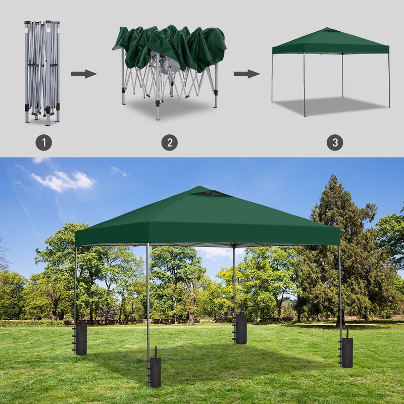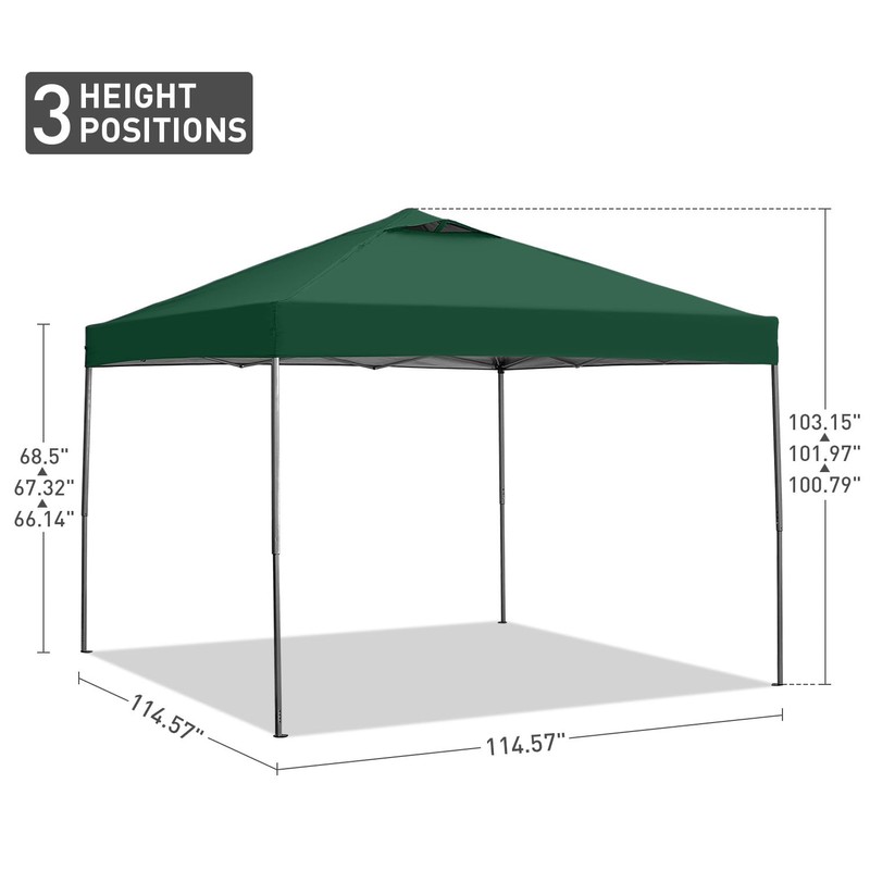 GDY 10x10 Pop Up Canopy Tent with Vents, 3 Adjustable Height, Outdoor Canopy with 4 Sandbag,Patio Sun Shade for Events, Parties, Camping, (Green).