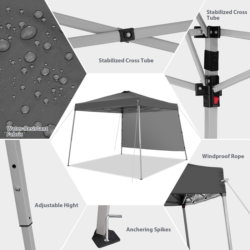 GDY 8'x8' Pop Up Canopy Tent with a Sidewall, Portable Gazebo, Outdoor Canopy for Patio, Beach, Camping, Grey.