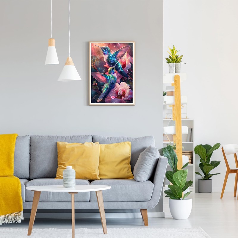 GDYEEH DIY 5D Hummingbird Diamond Art Kits, Pink Flowers Round Full Drill Sparkling Diamond Painting Picture, Birds Diamond Painting Art Kits Craft for Adults Beginners, Home Wall Decor 12x16 inch