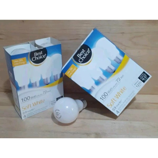 GE 2[4Ct]= 8BULBS: BEST CHOICE 100WATT/72 Soft White Light Bulbs A19 New Old Stock