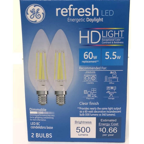 ge 31508 Clear Finish Daylight HD 60w Dimmable Pack 2