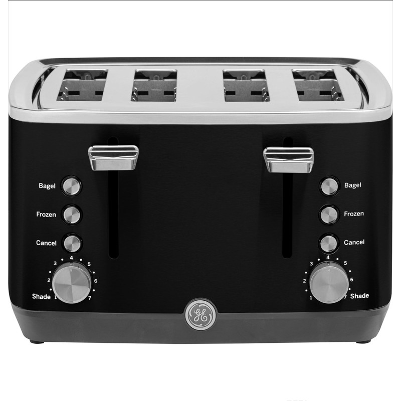 GE 4 Slice Toaster | Extra Wide Slots for Bagels, Breads, Waffles & More | 7 Shade Options | Countertop Kitchen Essentials | 1500 watt, Black