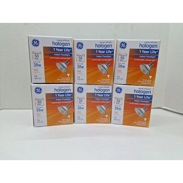 NEW Case of 6 GE Halogen energy-efficient Indoor FloodLight Bulb comfortable, inviting light Short Neck Par 30 50w 580 lumens 69166