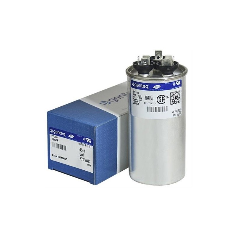 GE 97F9895 - 45 + 5 uf MFD 370 Volt VAC Genteq Replacement Round Dual Run Capacitor