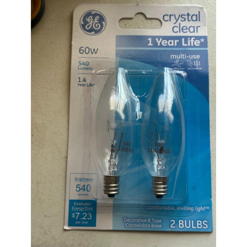GE CANDLABRA LAMP 60 WATT CLEAR (4-2PACKS=8 LAMPS)