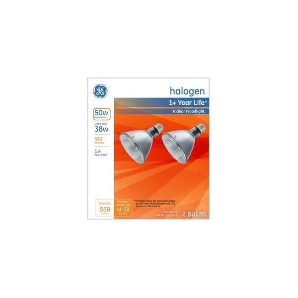 - GE Halogen 50-Watt PAR30 Long Neck Indoor Floodlight bulbs cast a wide beam of warm white halogen light. They are dimmable to provide just the right brightness. GE Halogen PAR30 (3-3 with 4-inch diameter) Long Neck Indoor Floodlight bulbs are rated to last 1.4 years based on 3 hours per day use. Use these halogen PAR30 long neck bulbs with medium bases in indoor track lighting, can lights and recessed lighting.