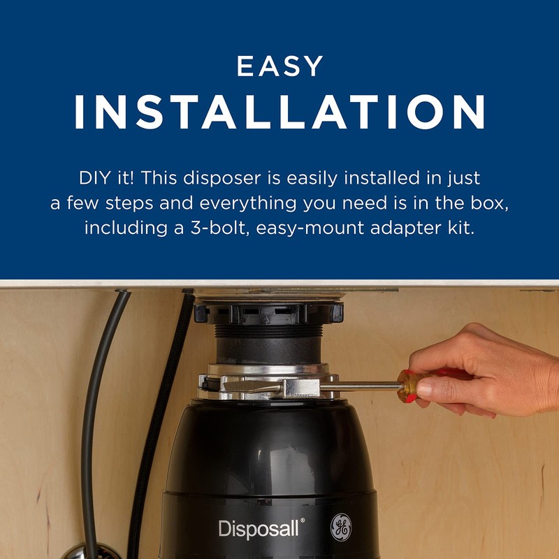 GE Continuous Feed Garbage Disposal, 1/2 Horsepower, Good for Grinding: Beans, Potatoes, Peels, & Cooked Meat, Easy Install Kit Included, Non-Corded, Recommended for 2-4 Person Homes Black