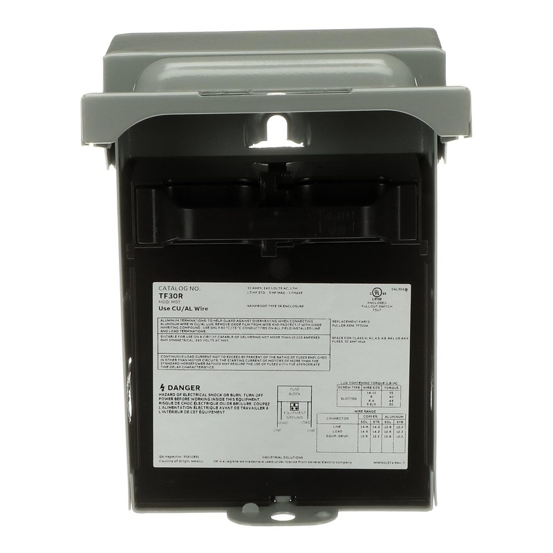 ABB TF30RCP • Weatherproof Fused AC Disconnect Switch • AC Disconnect 30A 240V • 1 Phase N3R • Horsepower Rated • 10kAIC