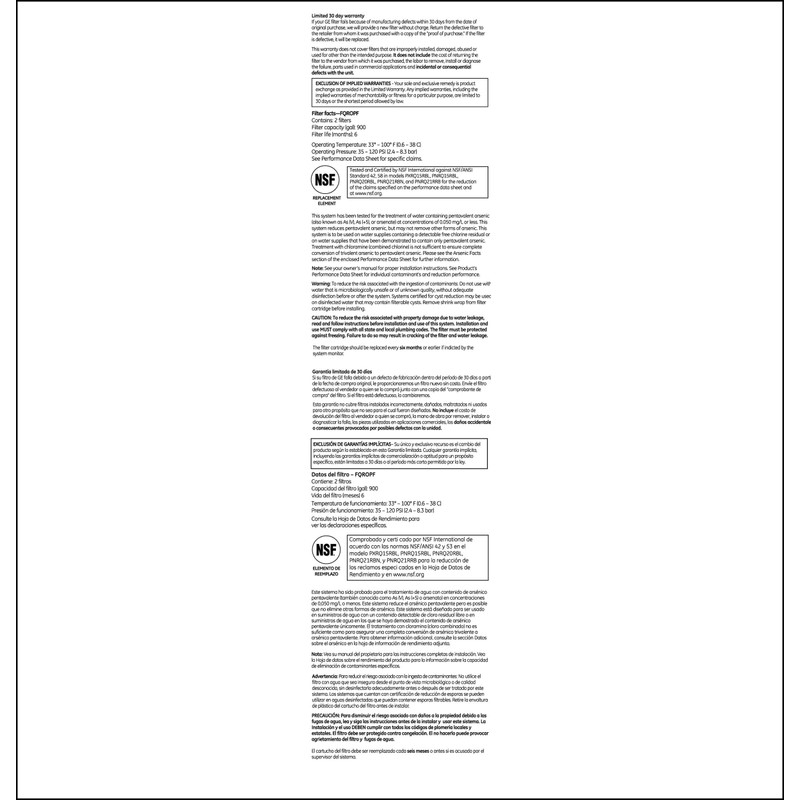 The GE Profile Reverse Osmosis Replacement Filter Set reduces more than 10 contaminants in your drinking water, including chlorine-resistant cysts, lead and asbestos. Includes a pre- and post-filter replacement set compatible with the PXRQ15RBL system and made with "twist and lock" technology, providing for simple and easy filter installation Recommended replacement every 6 months or 900 gallons for fresh, filtered water. NSF/ANSI certified.