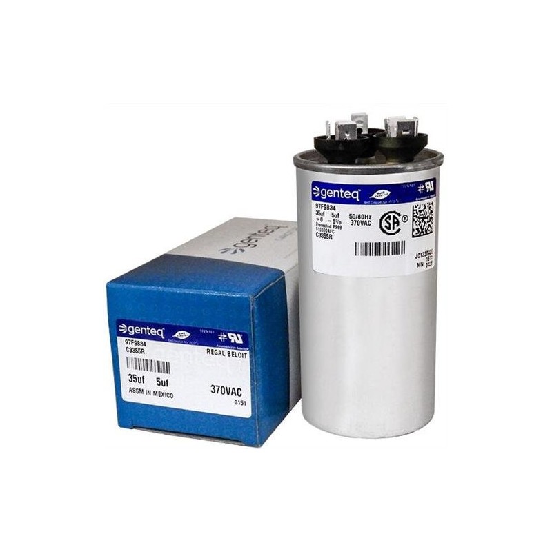GE/Genteq 97F9834BZ2 / 97F9834BZ3-35 + 5 uf MFD 370 Volt VAC Genteq Replacement Round Dual Run Capacitor