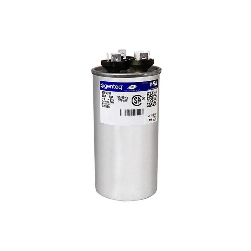 GE/Genteq 97F9834BZ2 / 97F9834BZ3-35 + 5 uf MFD 370 Volt VAC Genteq Replacement Round Dual Run Capacitor