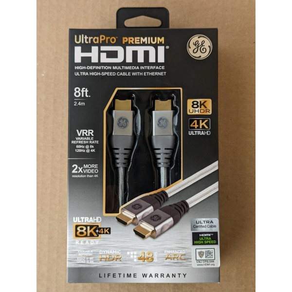 GE 8-FT 2.4m Premium Ultra High-Speed HDMI Cable 8K UHDR 48GBPS Dynamic HDR Gold plated.