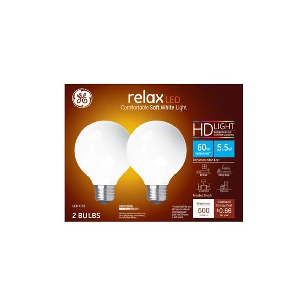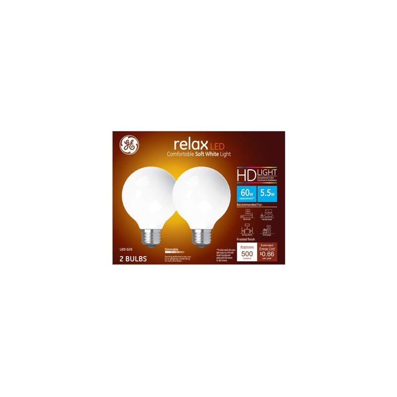 - GE Lighting 31696 LED Relax Globe Light Bulbs, Soft White, 500 Lumens, 5.5-Watts
