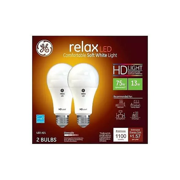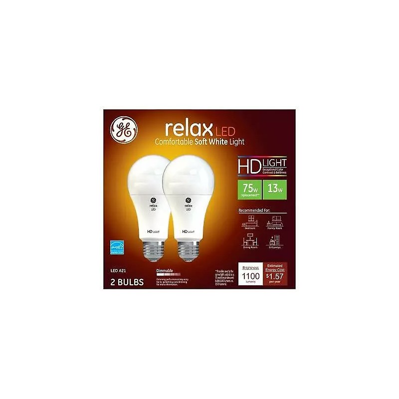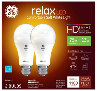 GE Lighting 36144 Relax HD LED Light Bulbs, Soft White, 1100 Lumens, 13 Watts, 2-Pk. - Quantity 1