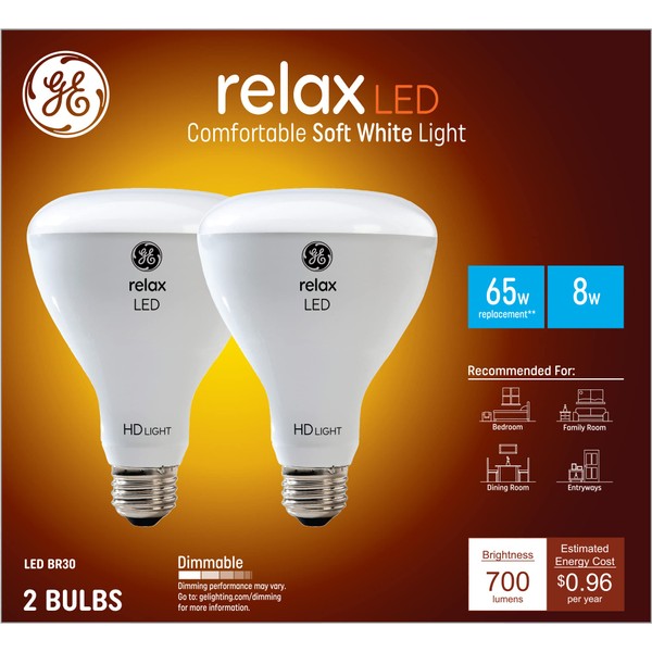 - GE Lighting BR30 Indoor LED Floodlight Bulbs, 10-Watt, Energy Smart, Soft White Finish, Dimmable, 65-Watt Replacement, 700 Lumens, Medium Base, 2-Pack