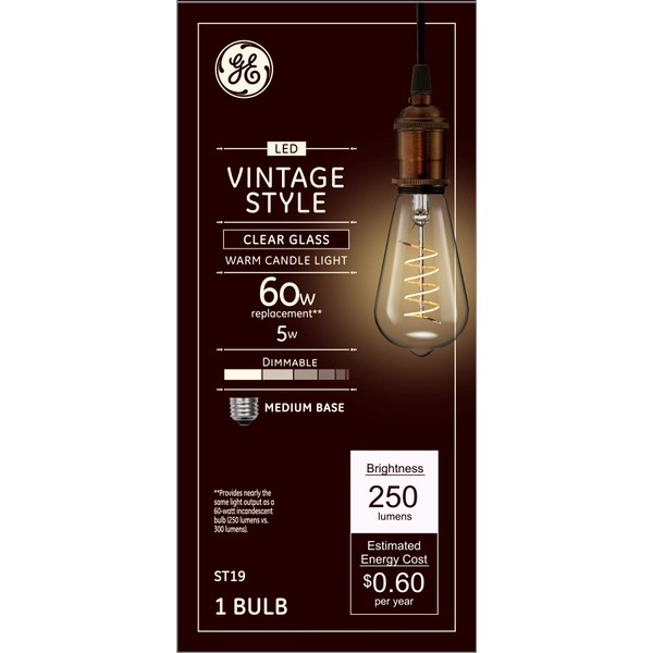 GE Lighting Vintage Edison Style LED Light Bulb, 5 Watts (60 Watt Equivalent) Warm Candle Light, Clear Glass, Medium Base, Dimmable (1 Pack)