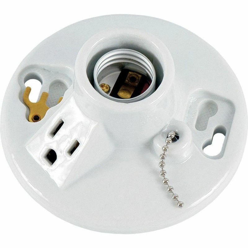 GE Porcelain LAMPHOLDER Medium Base LIGHT Bulb FIXTURE Pull chain & Outlet GE 18305