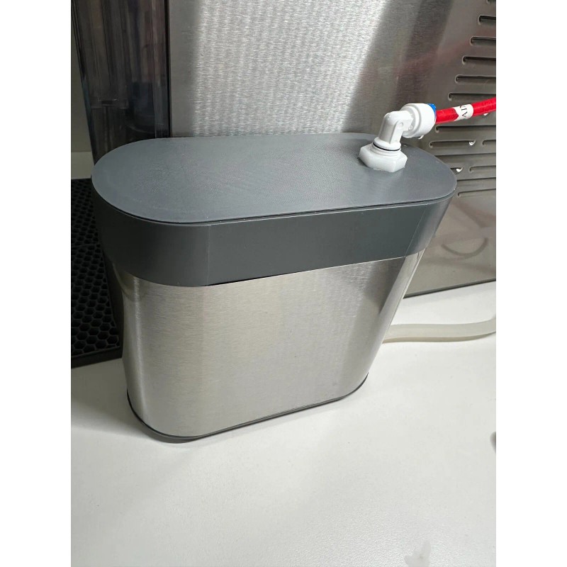 Permanent Water Line conversion kit for GE Profile Opal 2.0 Countertop Nugget Ice Maker. There are three sizes please see photo two for size comparison. If you are not sure, measure the width of your side tank and compare to sizes shown in photo two. With this custom water tank cover and float fill valve you can connect 1/4" water line to automatically fill the bottom half of the side water tank and never have to refill water tank again. Comes lid and float valve, Ice maker, tank and water line NOT INCLUDED. DOES NOT FIT Opal 2.0XL ONLY standard 2.0. You need 1/4 plastic water line with a shut off valve, so you can disconnect water to clean the tank. to install just remove blue tubing retainer, connect 1/4" plastic water line and replace blue tubing retainer, and turn on the water. Valve will shut off once tank is full. Fill tank lid original designs by Chris Tracy & Davis Hartley, from Thingverse. Redesigned manufactured and assembled by BCsystems
