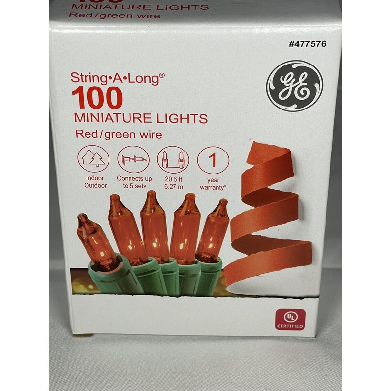 GE Red Miniature String-A-Long Lights General Electric 20ft 100 count green wire