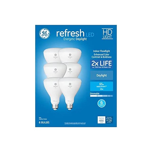 GE Refresh 6-Pack 65 W Equivalent Dimmable Daylight Br30 LED Light Fixture Light Bulb, Packaging May Vary
