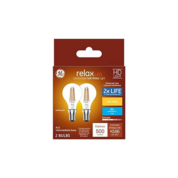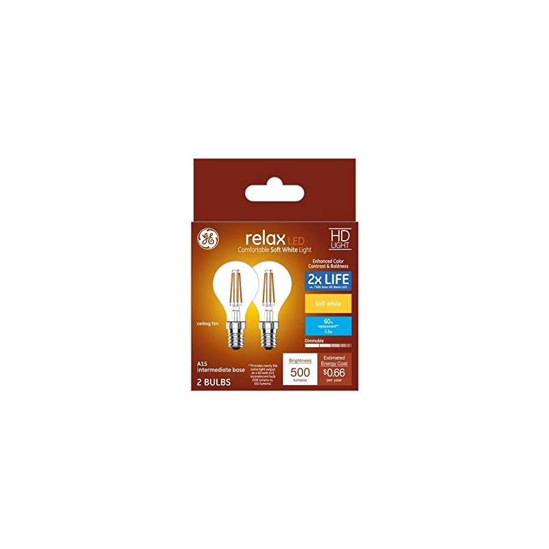 GE Relax 2-Pack 60 W Equivalent Dimmable Soft White A15 LED Light Fixture Light Bulbs Candelabra2