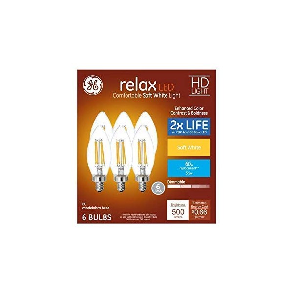 Soft White Decorative LED Candle Bulbs, 60W Replacement (6 Pack) by GE
