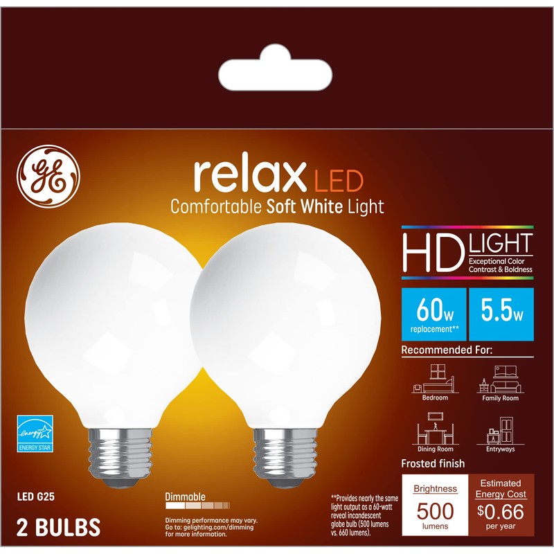 - The GE Relax HD LED light bulbs are the perfect decorative, dimmable light bulbs that fit lamps, fixtures and more.
