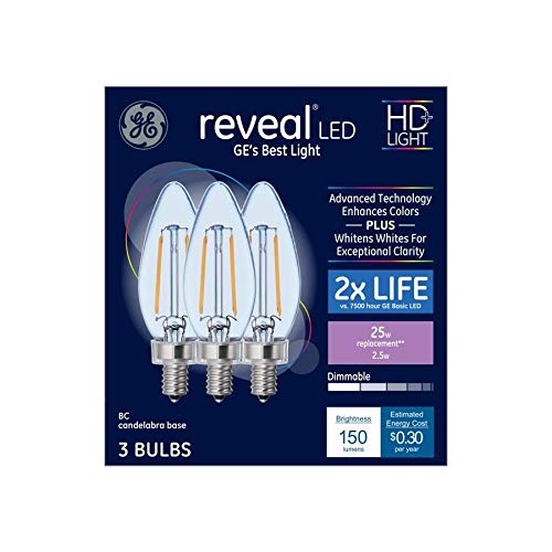 GE Reveal 25-Watt EQ Color-Enhancing Dimmable Candle Light Bulb (3-Pack)
