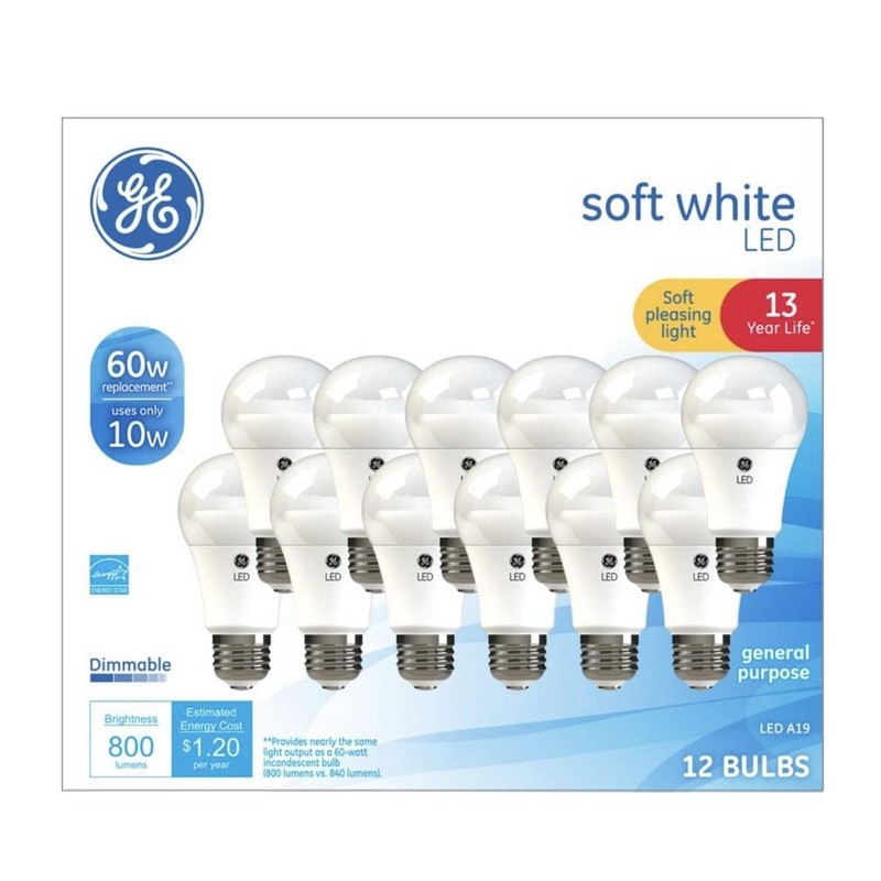 GE Soft White 60 Watt Replacement LED Light Bulbs, General Purpose, Dimmable Light Bulbs (Soft White, 12 Pack) (12)