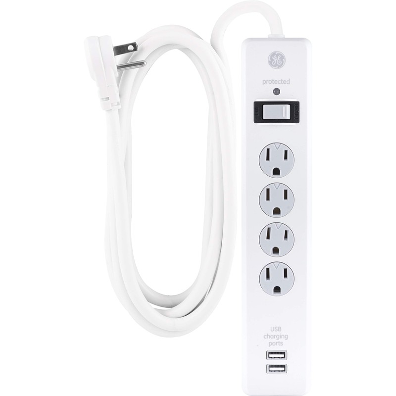 GE Surge Protector, 4 Outlets 2 USB Ports, Extra Long 8ft. Power Cord, White, 25798