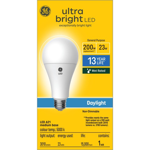 GE Ultra Bright LED 200 Watt Replacement, Daylight, A21 General Purpose Bulb (1 Pack)