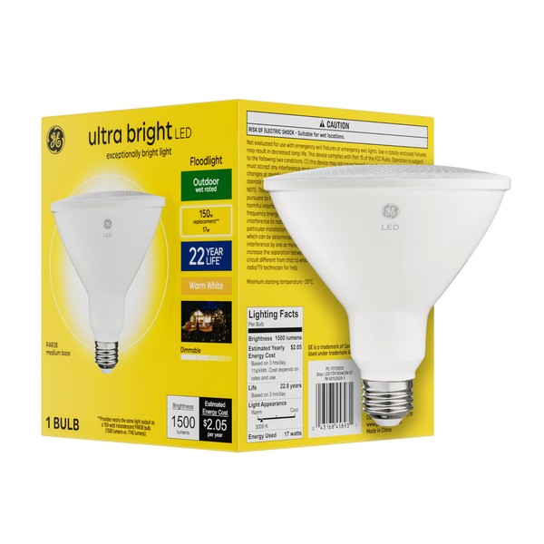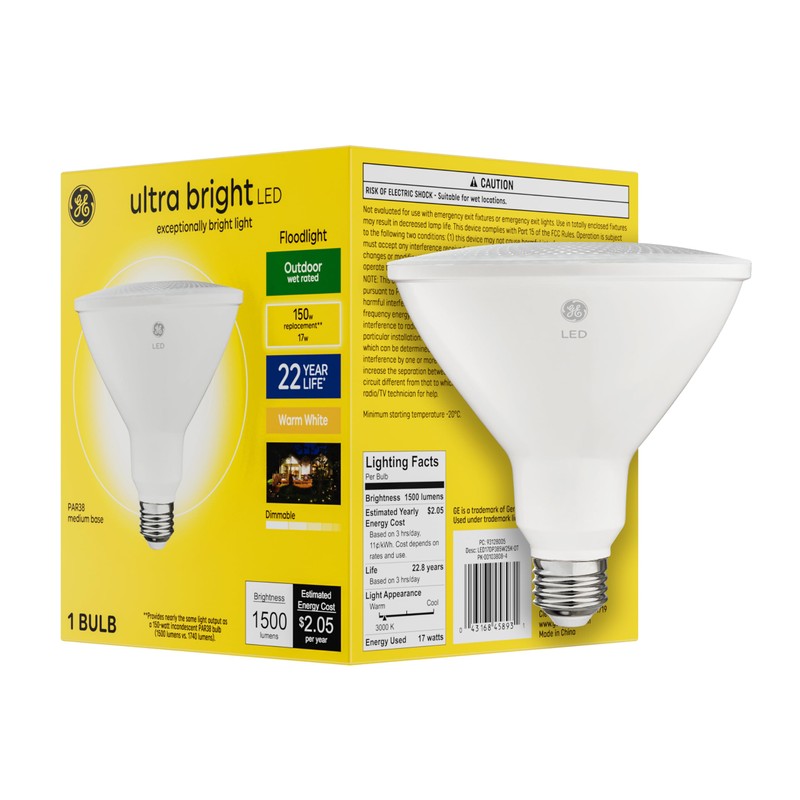 GE Ultra Bright LED Light Bulb, 150 Watt, Warm White, PAR38 Outdoor Floodlight