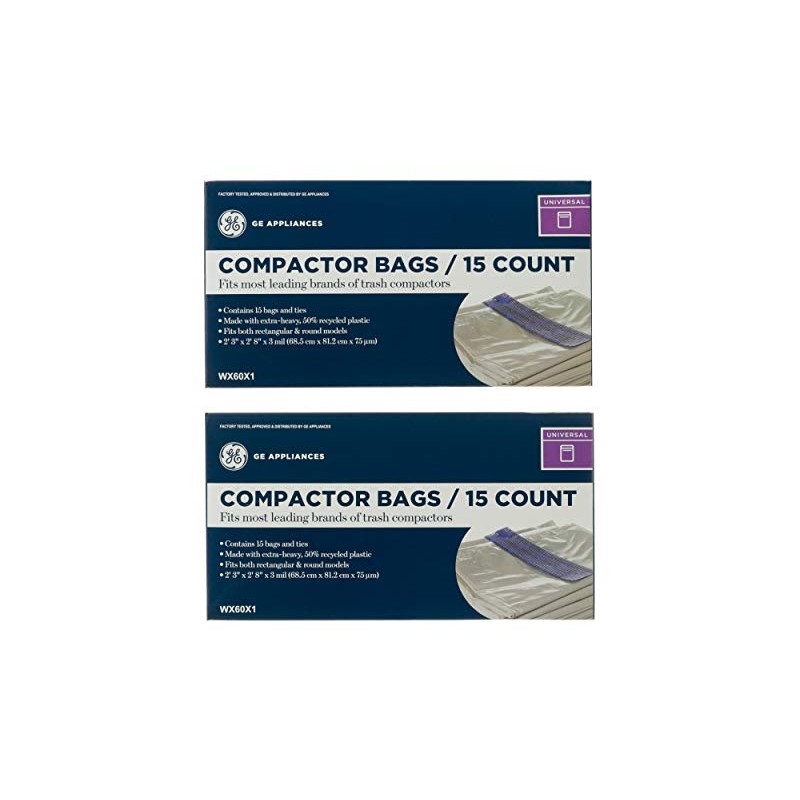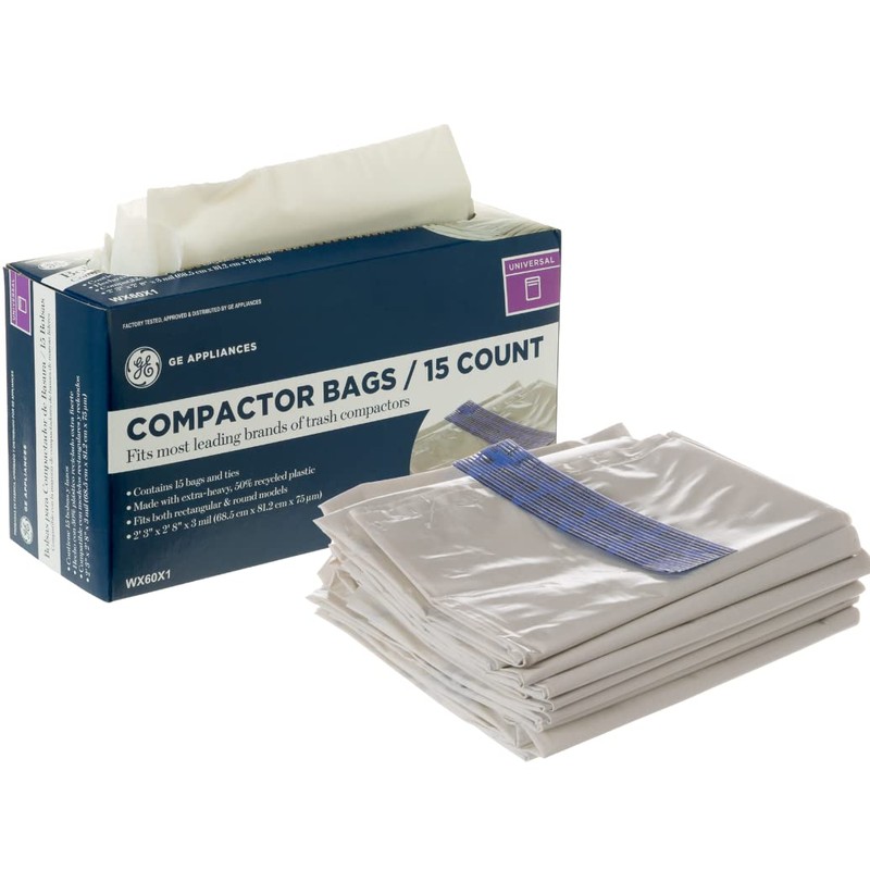 - Genuine GE compactor bags made with extra-heavy, 50% recycled plastic