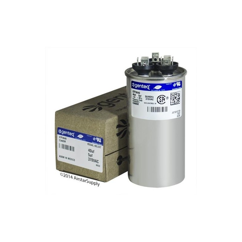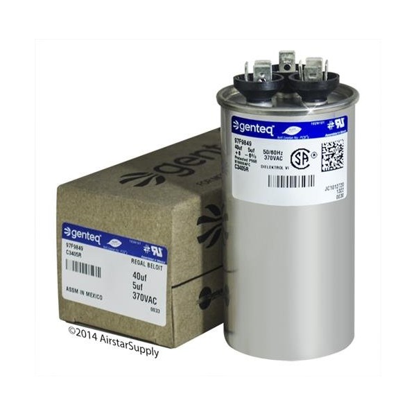 GE Z97F9849 - 40 + 5 uf MFD 370 Volt VAC Genteq Replacement Round Dual Run Capacitor