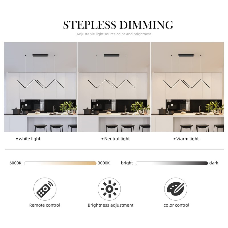 - 【Adjustable Height & Suitable Size】Length:120cm/47.2in. Width:8cm/3.1in. Height:20cm/7.87in. Adjustable suspension cable:120cm/47.2in. Power:40W. Voltage:110V. You can adjust the hanging pendant light according to the ceiling height.