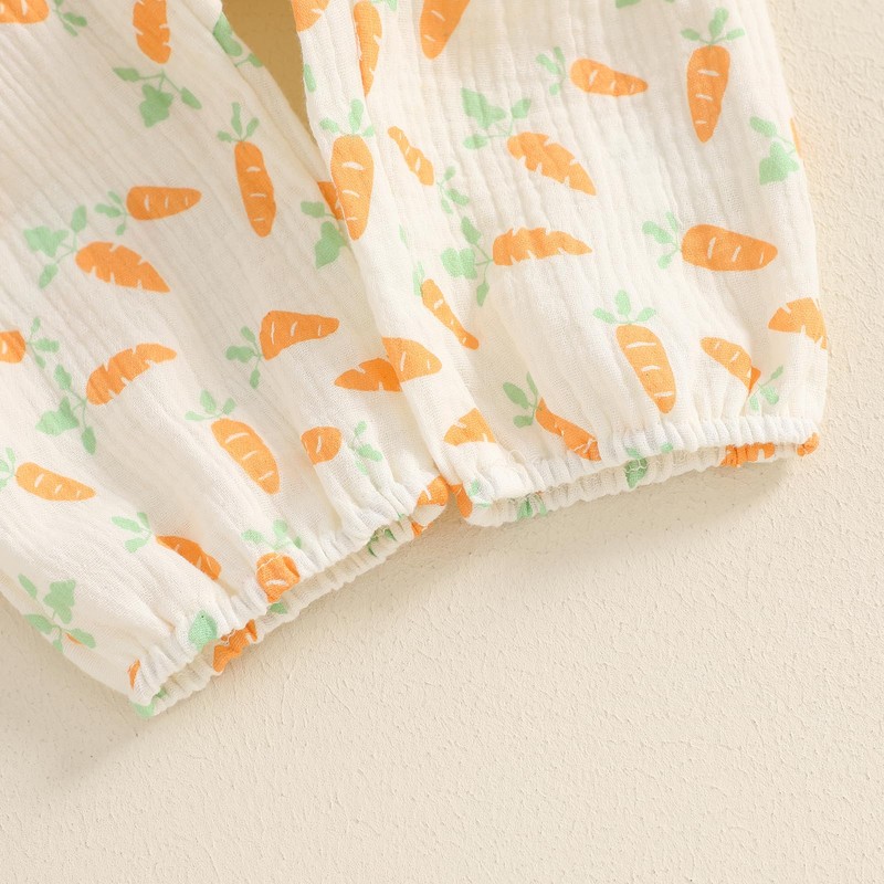 Newborn Baby Boy Girl Easter Outfit Bunny Carrot Print Long Sleeve Romper My First Easter Baby Grow Easter Baby Clothes with Headband