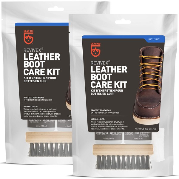GEAR AID Revivex Leather Boot Care Kit with Water Repellent, Cleaner, Brush and Cloth, 2 Pack