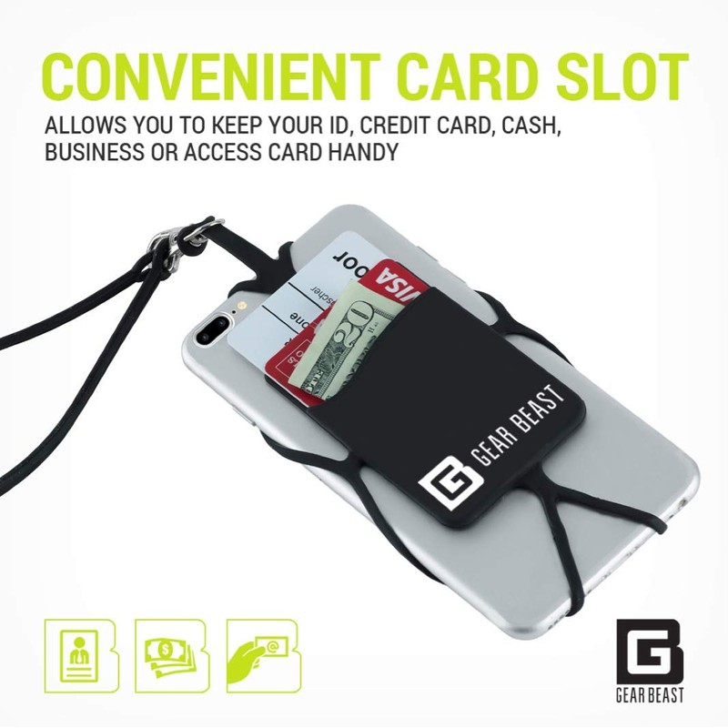 Gear Beast Cell Phone Lanyard - Universal Neck Phone Holder w/Card Pocket and Silicone Neck Strap
