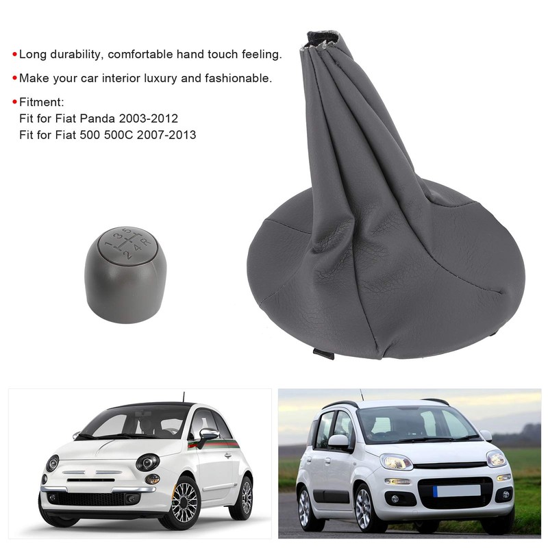 - High appearance: this gear knob and gear boot have an exquisite surface finish and a pattern design, which makes the gaiter boot with 5-speed gear knob look more luxurious and eye-catching and is suitable for the Panda 03-12 / for the 500 500C 07-13.
