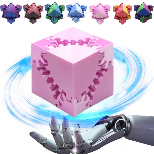 Gear Sphere Gear Cube 3D Printed Gear Ball Spin Cube Fidget Toy Relieving Stress & Anxiety, Fidget Cube GearSphere Desk Toy, Whirling Wonder Fidget for Sensory and Autism (Laser Pinky White)
