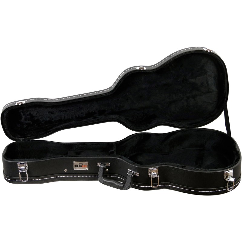Gearlux Wooden Baritone Ukulele Case with Exterior Lock and Key, PVC Handle, and Plush Interior Padding - Black