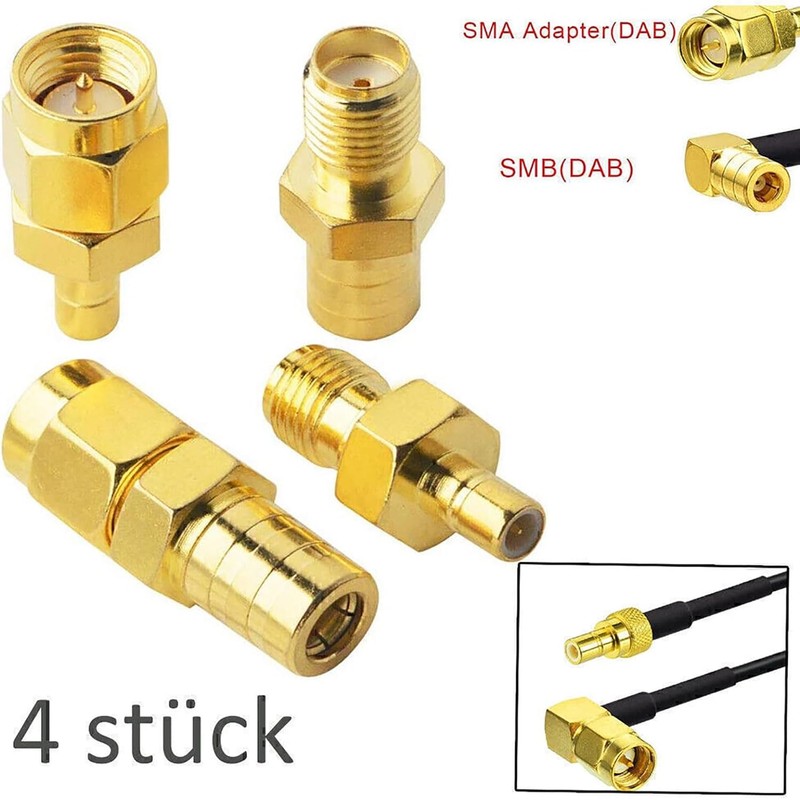 GEARMONSTER 4-Piece DAB Car Radio Antenna SMB Adapter to SMA Plug RF Converter Antenna Adapter Kit Compatible with DAB Car Radio FM Tuner Receiver