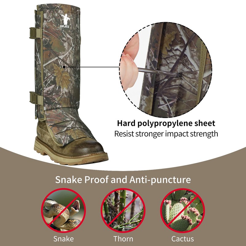 GearOZ Snake Gaiters Snake Guards, Waterproof Snake Chaps Snake Bite Protection for Lower Legs, Snake Proof Gaiters Fit for Men & Women, Adjustable Size for Hunting Hiking and Farm Working (Camo)