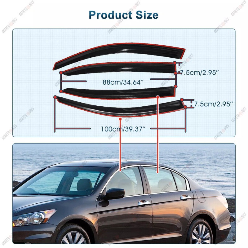 Geartronics For 2008-2012 Honda Accord JDM Window Visor Vent Sun Rain Guards Wind Deflectors