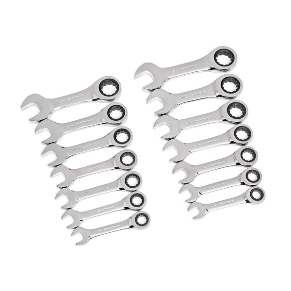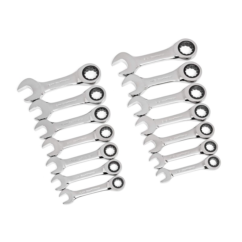 GEARWRENCH 14 Pc. 12 Point Stubby Ratcheting SAE/Metric Combination Wrench Set - 85206