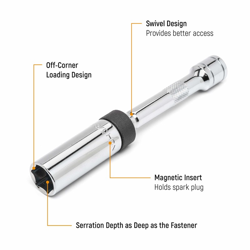 GEARWRENCH 5 Pc. 3/8" Drive 6 Pt. Magnetic Swivel Spark Plug Socket Set, 80601 , Black | GEARWRENCH
